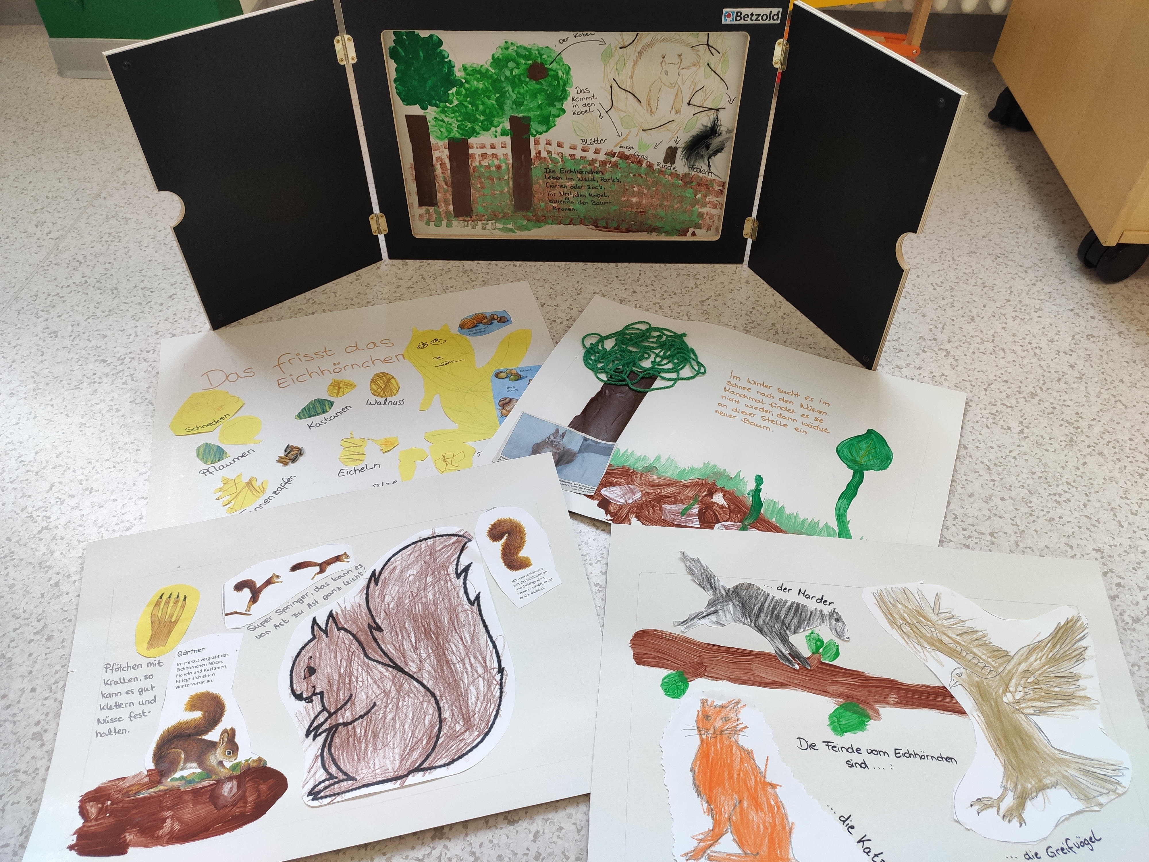 Ein Eichhörnchen besuchte uns in unserem Garten. Aus dem Fenster heraus konnten die Kinder beobachten, wie es von Ast zu Ast huschte. Schnell kam die Frage: „Was macht es da?“ Also starteten wir gemeinsam mit den Kindern ein Lernprojekt über das Eichhörnchen und was es im Herbst/Winter so macht.