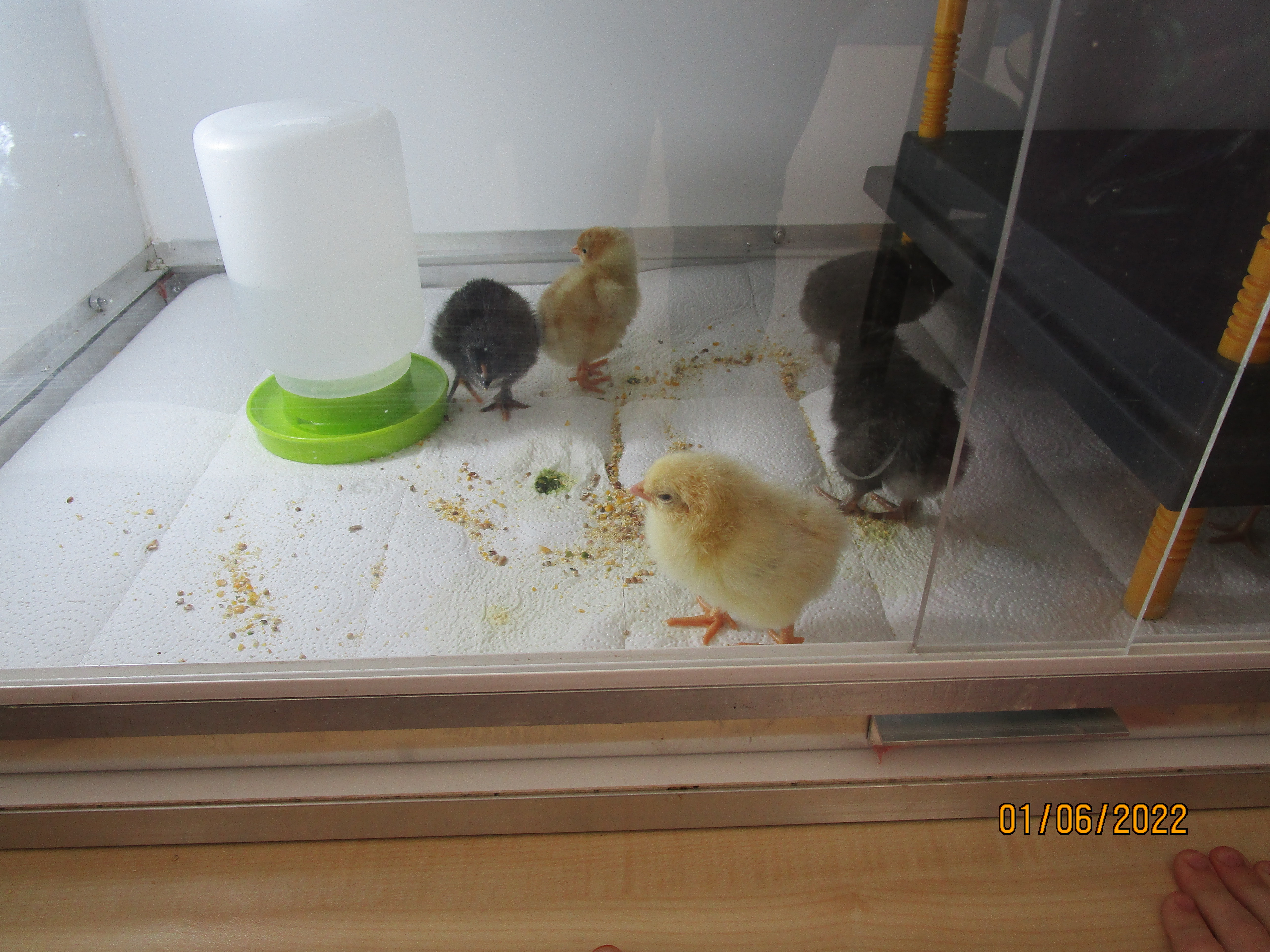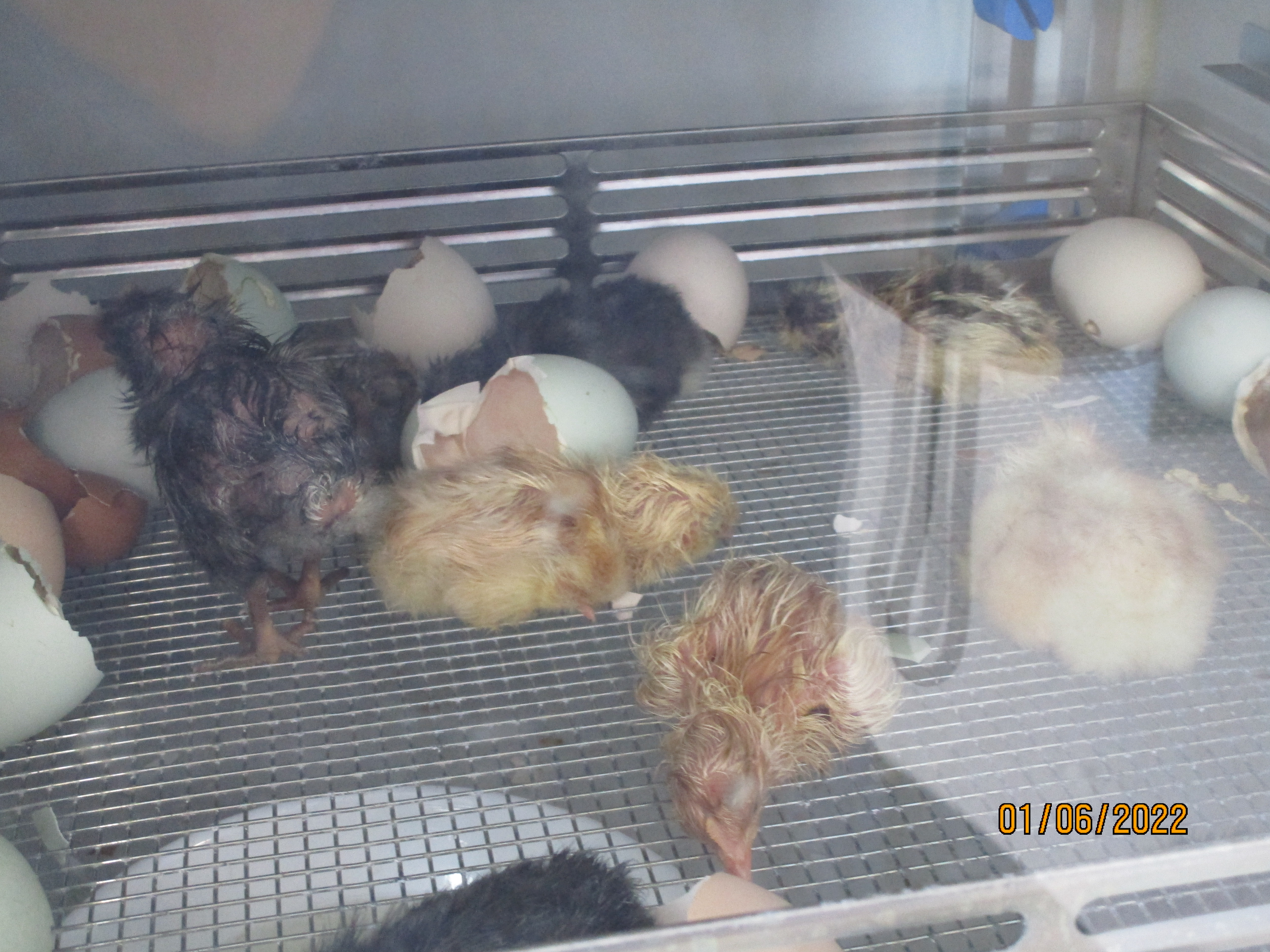 21 Tage später schlüpften 14 Hühnerküken in der „Kleinen Haie“- Gruppe.