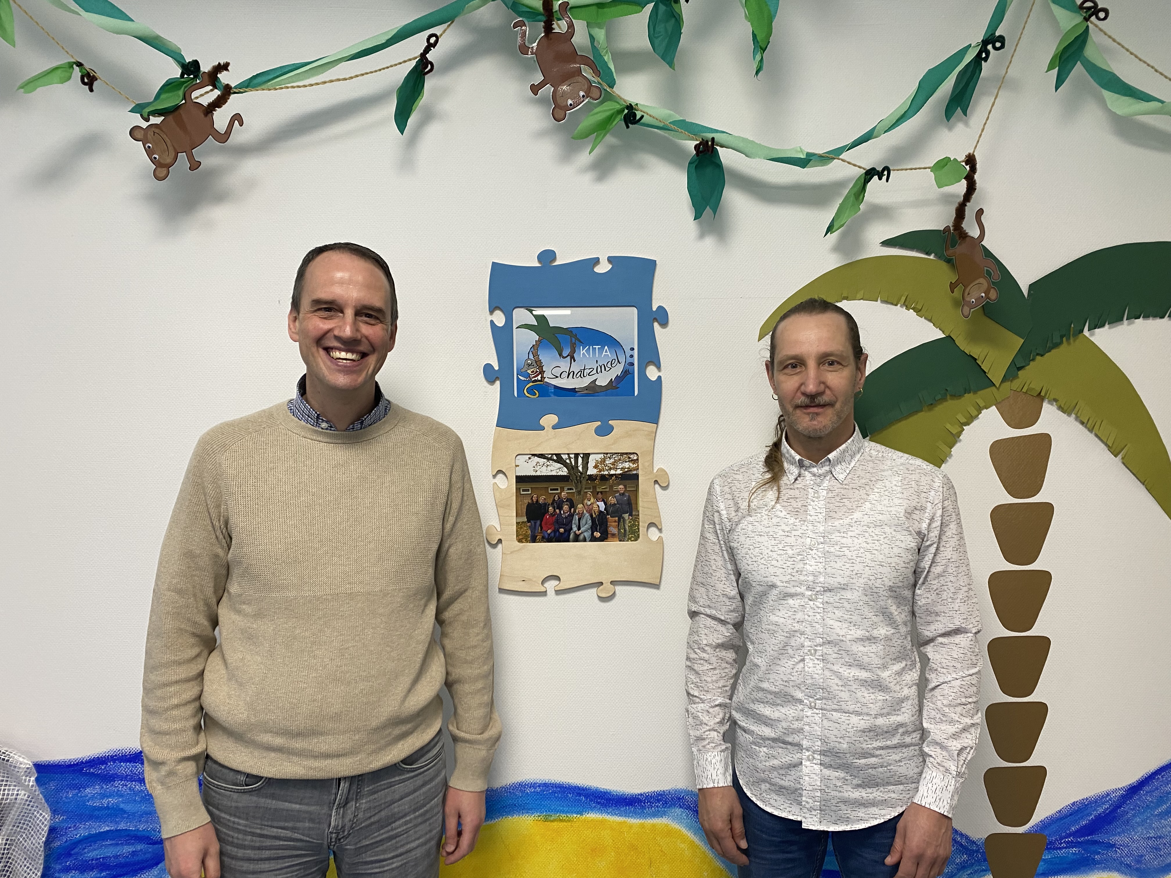 Seit einigen Tagen ist Herr Matthias Ernst in der Kita "Schatzinsel" als neue pädagogische Fachkraft eingesetzt. Ortsbürgermeister Jonas begrüßte Herrn Ernst in der Kindertagesstätte und wünschte ihm alles Gute und viel Tatkraft.