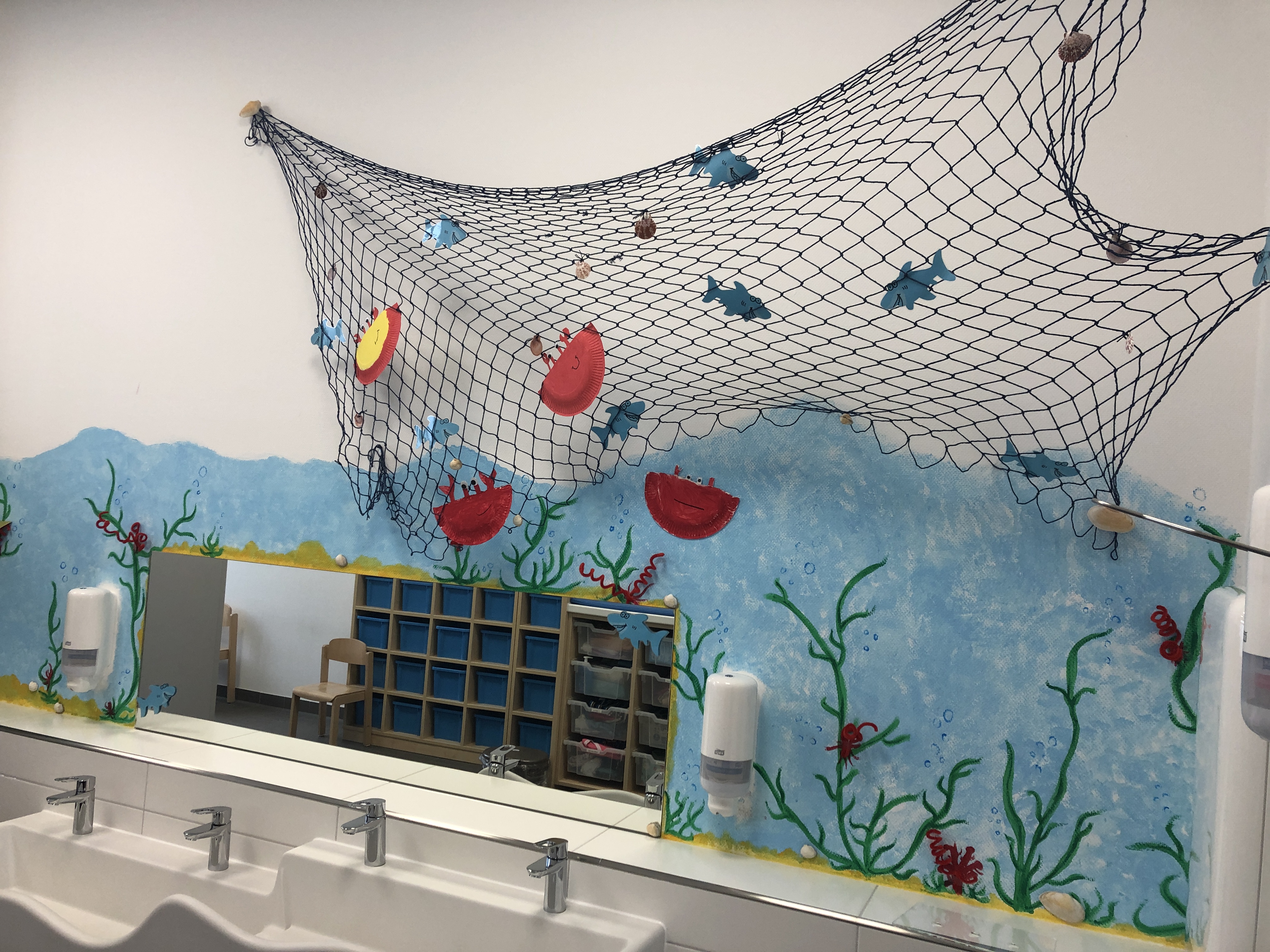 Im neuen Kindergartenjahr hat sich das Team der Schatzinsel überlegt, wie wir die Bäder der Kinder schöner und bunter gestalten können. Schon bald waren Ideen einer „wunderschönen Wasserwelt“ entstanden.