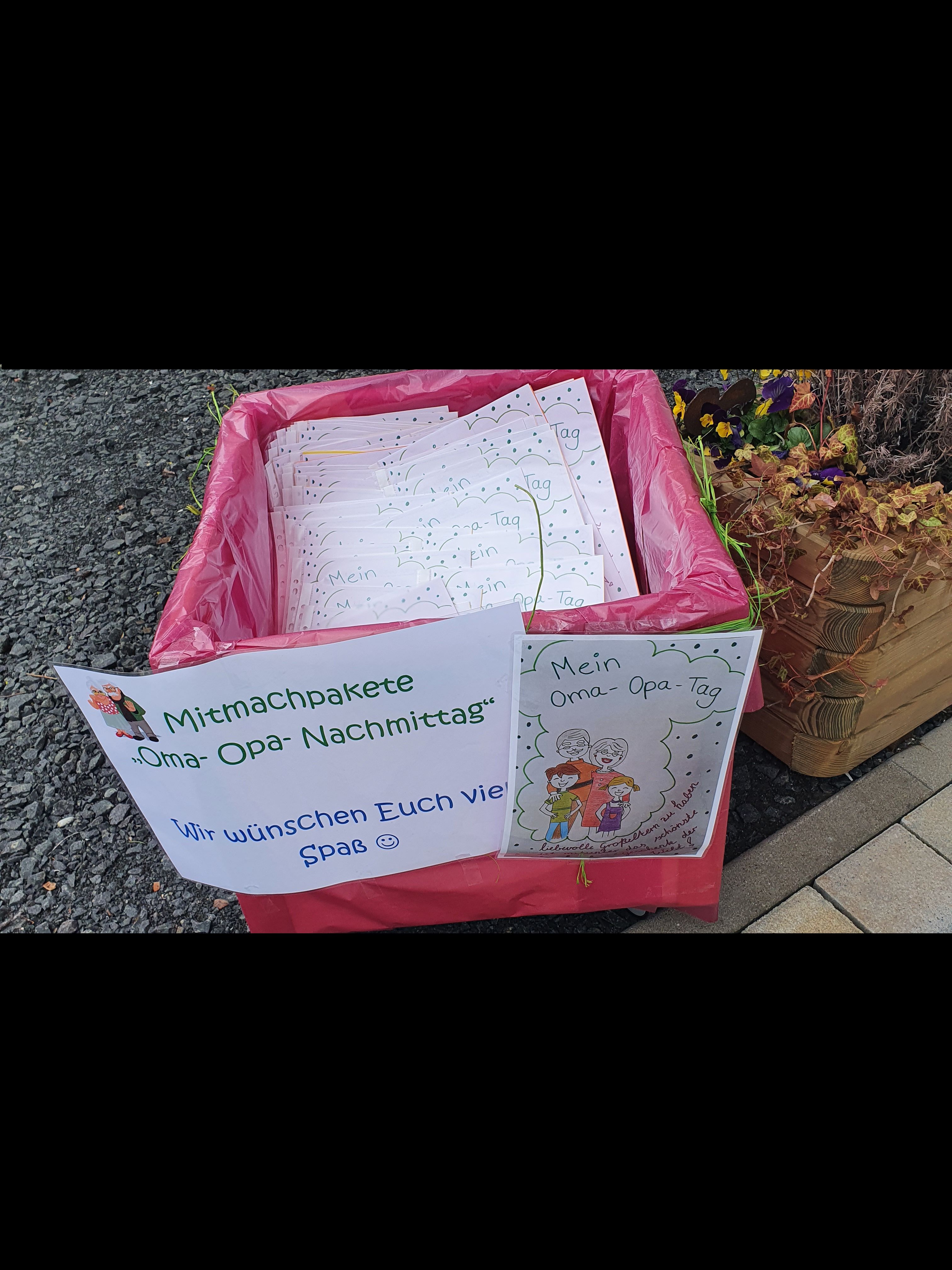 Es wurden Mitmachpakete zusammengestellt, die in der Kita abgeholt werden konnten, so dass die Kinder den „Oma- Opa- Tag“ gemeinsam mit Ihren Großeltern zu Hause durchführen konnten.
