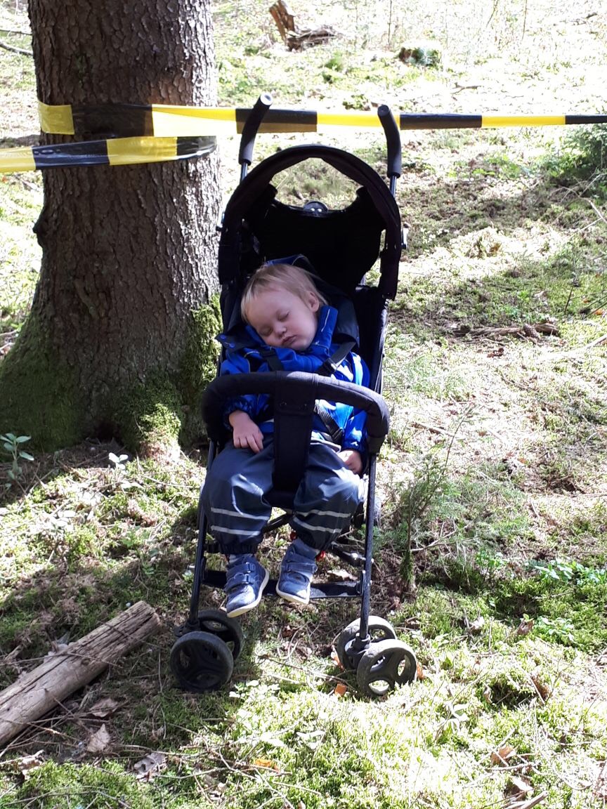 Der Wald und die Natur macht große Männer müde. Jutta, unsere Musikpädagogin besuchte uns mit Klang und Lieder im Wald.