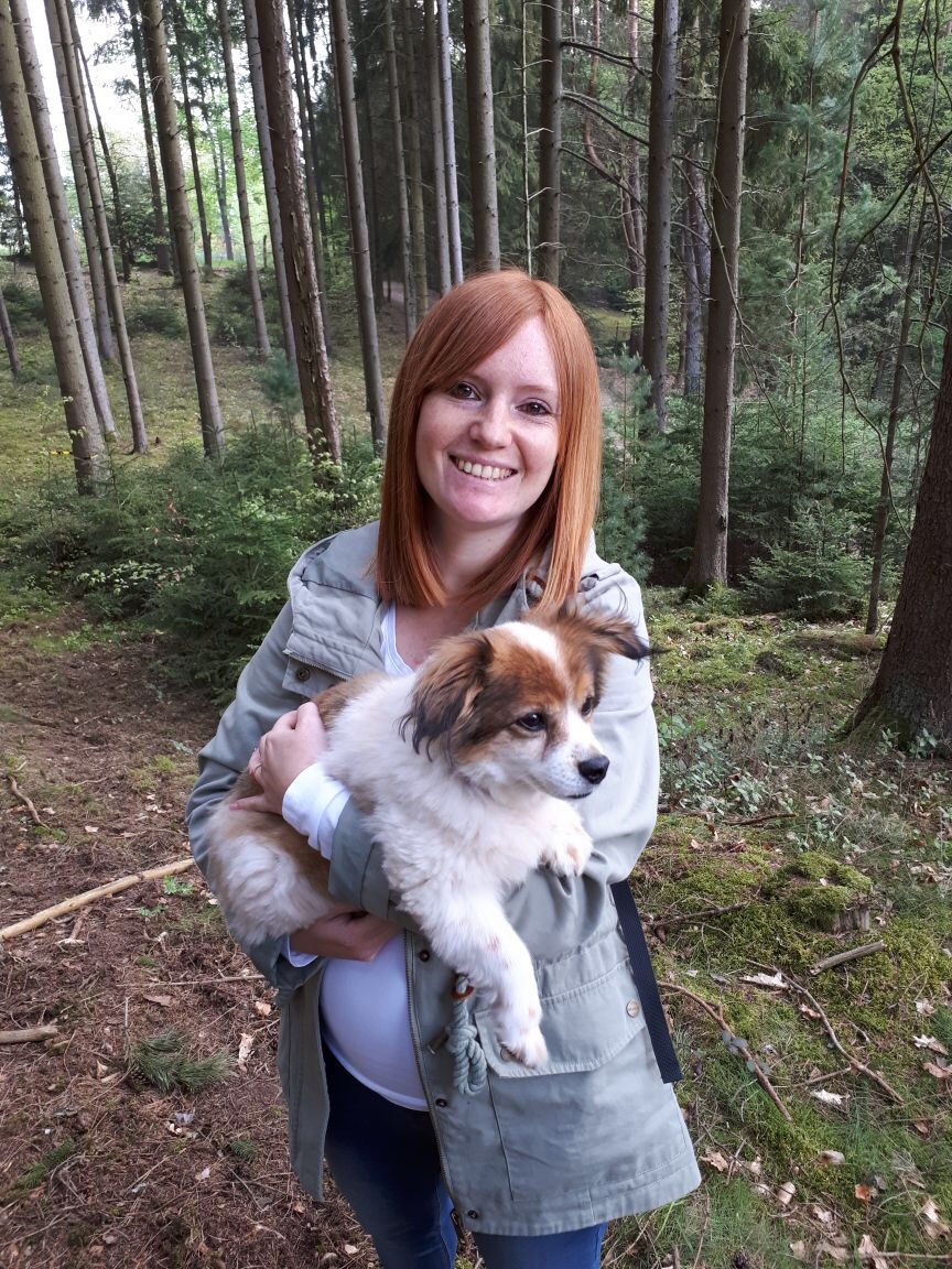 Lisa Gebhardt besucht mit ihrer Hundedame Kiki die Schatzinselkinder in der Waldwoche. Auch die kleinen Haie der U3-Gruppe genießen die Zeit im Wald.